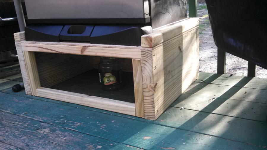 My pellet smoker is on a covered wood deck so i can use it in any weather.